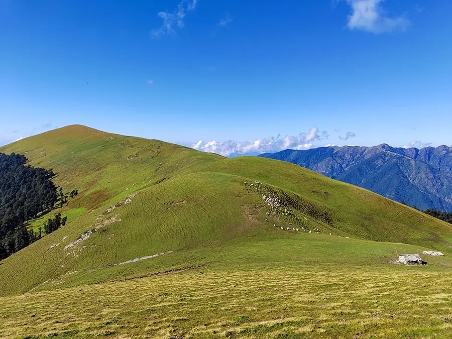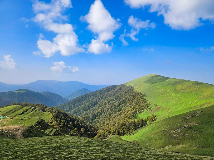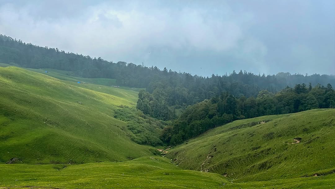 Today’s trek is one of the most rewarding as you ascend through dense forests that gradually open into vast alpine meadows. Ali Bugyal, one of Asia’s largest high-altitude meadows, welcomes you with rolling grasslands and panoramic views of peaks like Trishul and Nanda Ghunti. The landscape feels surreal, especially as clouds drift over the meadows. Camp here for the night under a sky full of stars.