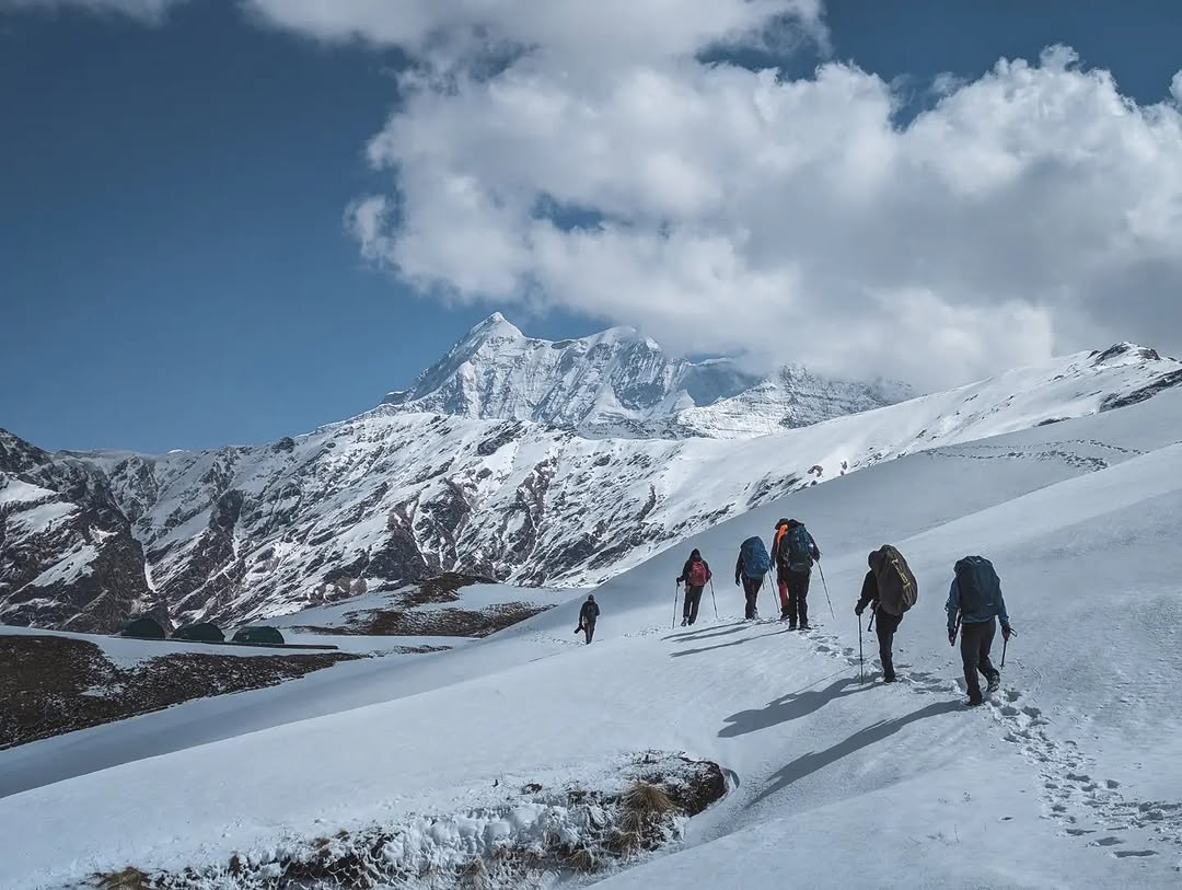The trek is managed by a highly experienced team including a versatile base camp manager for coordination and emergencies, a certified trek leader with mountaineering and first aid qualifications, a skilled high-altitude chef, and local guides. Adequate support staff is deployed based on group size.