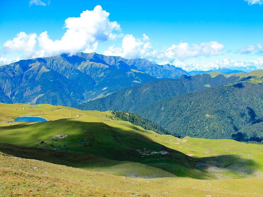 After breakfast, the trek begins with a descent towards the river, followed by a steady climb through oak and rhododendron forests. The trail offers glimpses of local life and traditional Himalayan homes. As you gain altitude, the air becomes crisp and refreshing. By afternoon, reach Didna Village, a beautiful settlement surrounded by lush greenery. Spend the evening interacting with locals and soaking in the serene surroundings.