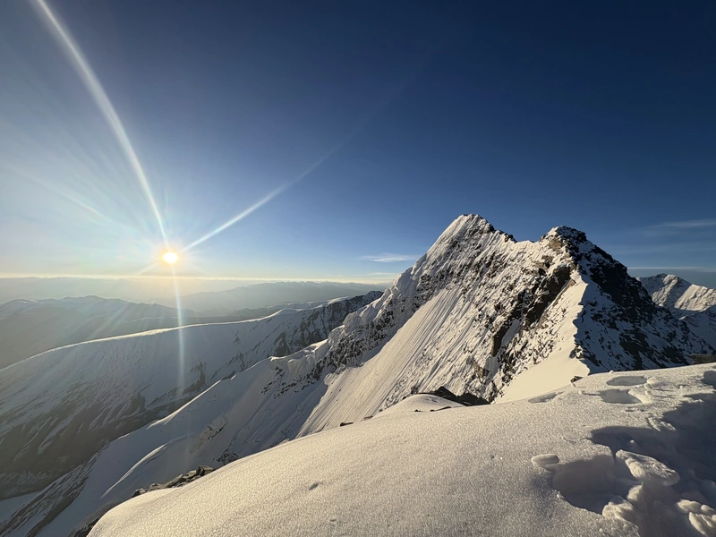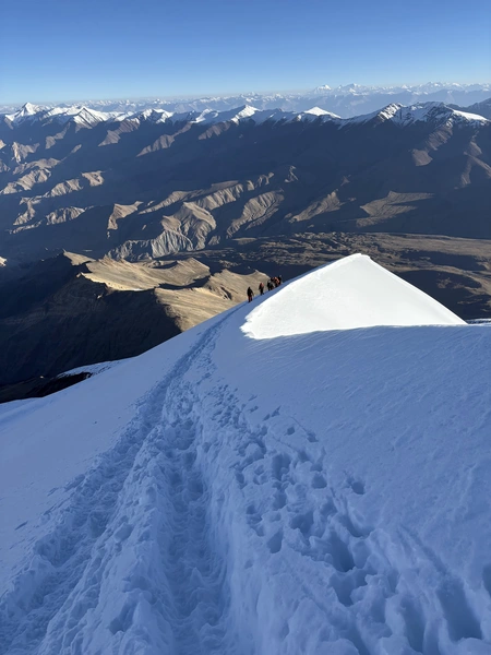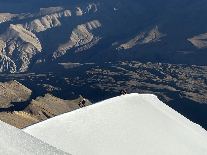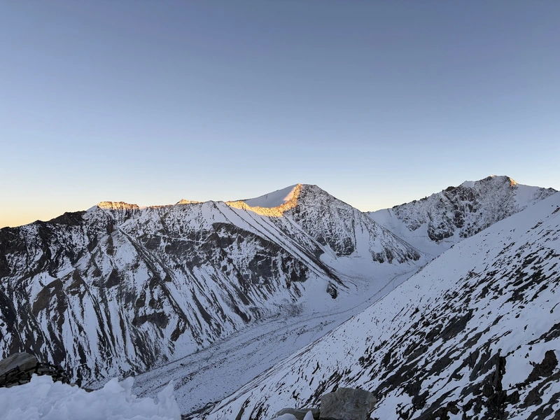 Day 9: Summit Kang Yatse II (6,250 m / 20,500 ft) and Return to Base Camp The summit push begins late at night under a sky full of Himalayan stars. Equipped with headlamps, climbers gradually ascend snow slopes and glacial terrain under the guidance of experienced mountaineering leaders. The climb is physically demanding but extremely rewarding. As dawn breaks, the surrounding peaks of the Zanskar and Karakoram ranges become visible, creating an unforgettable alpine panorama. Reaching the summit of Kang Yatse II at 6,250 meters offers breathtaking views of the Ladakh Himalayas. After celebrating the achievement, the team carefully descends back to base camp for well-deserved rest.