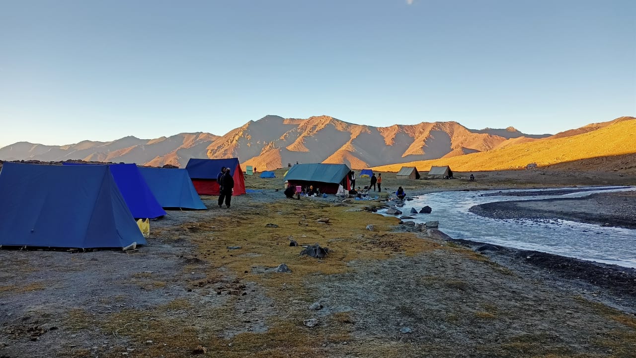 Day 7: Nimaling to Kang Yatse II Base Camp (5,100 m / 16,700 ft) The trek from Nimaling to the base camp is short but significant as we enter the alpine glacial environment of the expedition. The trail gradually climbs through rocky moraines and high-altitude terrain, offering closer views of the Kang Yatse massif. Upon reaching base camp, the team sets up tents and prepares for the summit push. The rest of the day is spent resting, hydrating, and preparing gear for the summit attempt. The expedition leader will conduct a technical briefing regarding the route, safety procedures, and climbing strategy.