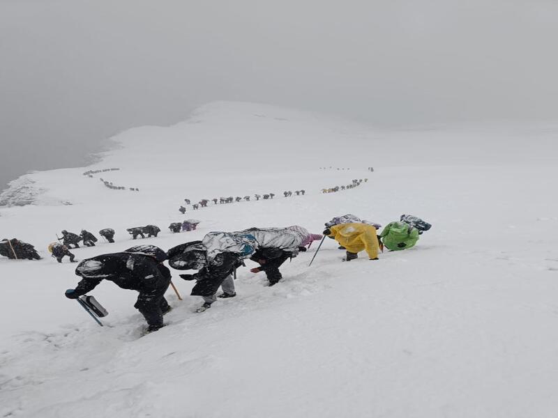 Today’s trek covers a distance of approximately 5 km and takes around 4–5 hours. The trail climbs from Min Thach (3,400 m) to Nagaru (3,800 m), one of the most scenic campsites of the trek. The route includes gradual ascents with occasional steep sections, offering stunning views of snow-covered peaks and vast valleys. Nagaru provides a panoramic setting, often with clouds drifting below the campsite. The evening is spent resting and preparing for the pass crossing the next day. Overnight stay at Nagaru.